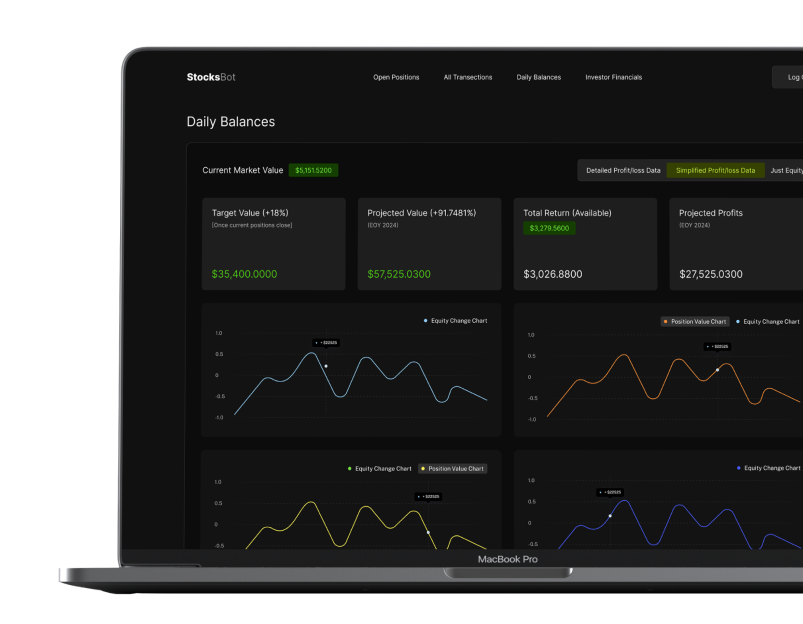 Born out of a vision to democratize the trading landscape, StocksBot began as a dream by one individual David Masterson. Founded in 2021, our platform was conceived to break down the barriers in the trading world. To give back in a world of take. The market can be a confusing thing to get into, but we have made it easier than ever. Set it and forget it. Come back to see your profits rise, that is all there is to it.